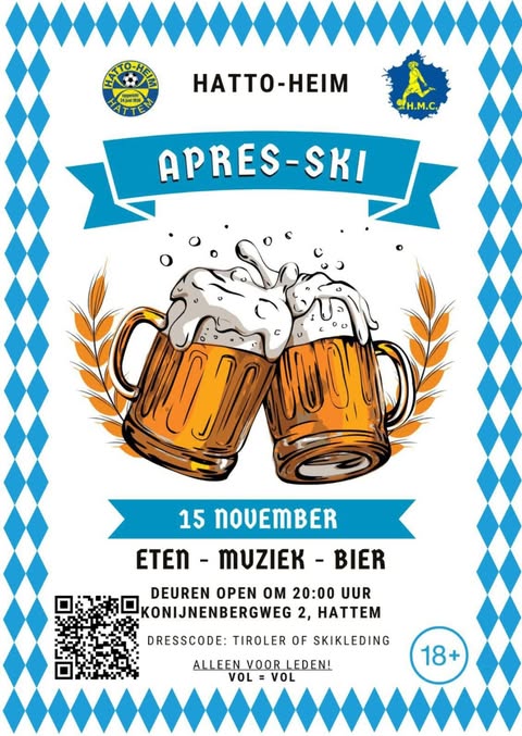Zaterdag 15 november organiseert sv Hatto-Heim een gezellige Après Ski Party.