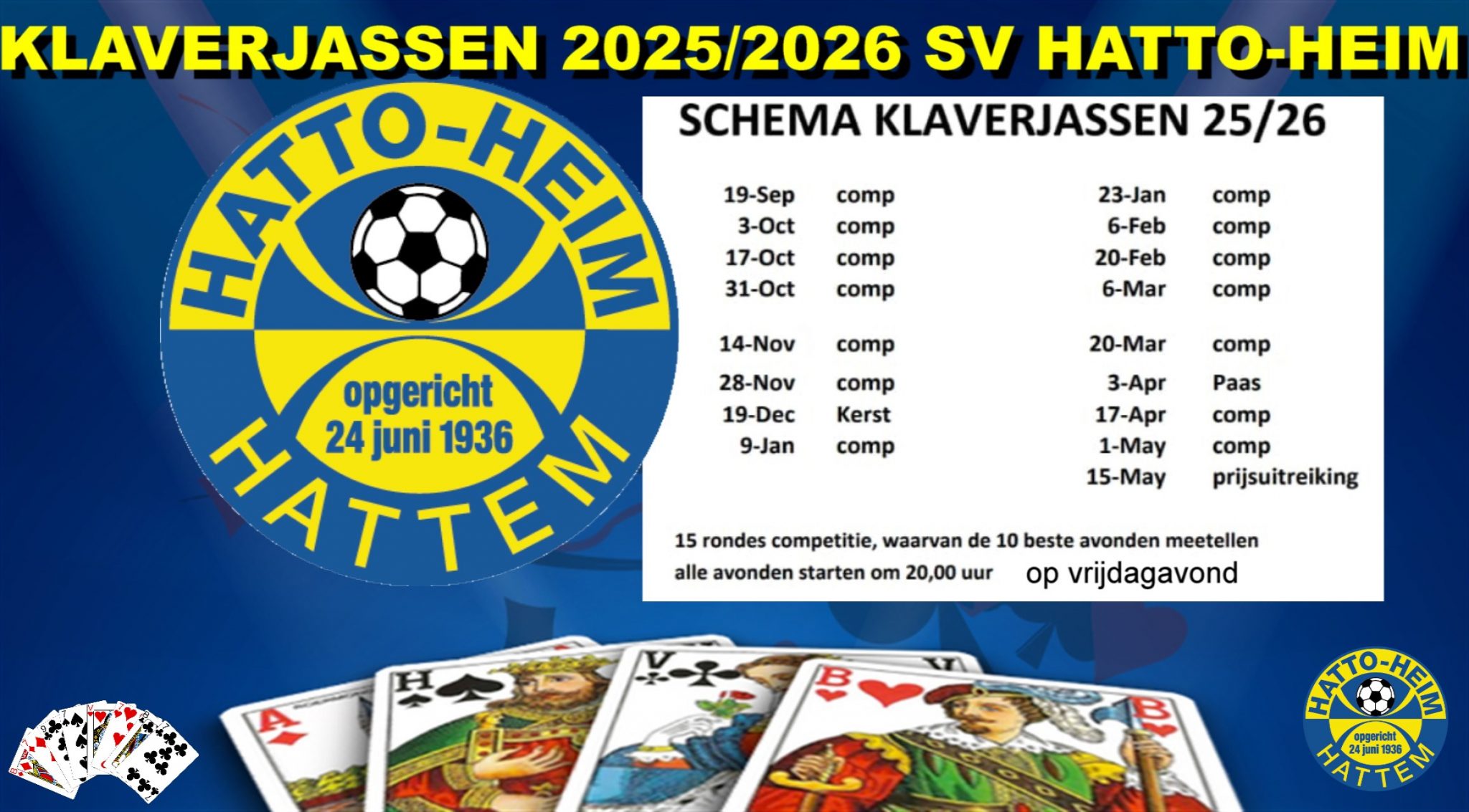 Vrijdagavond 19 september dan start het nieuwe seizoen 2025/2026 klaverjassen bij s.v. Hatto-Heim.