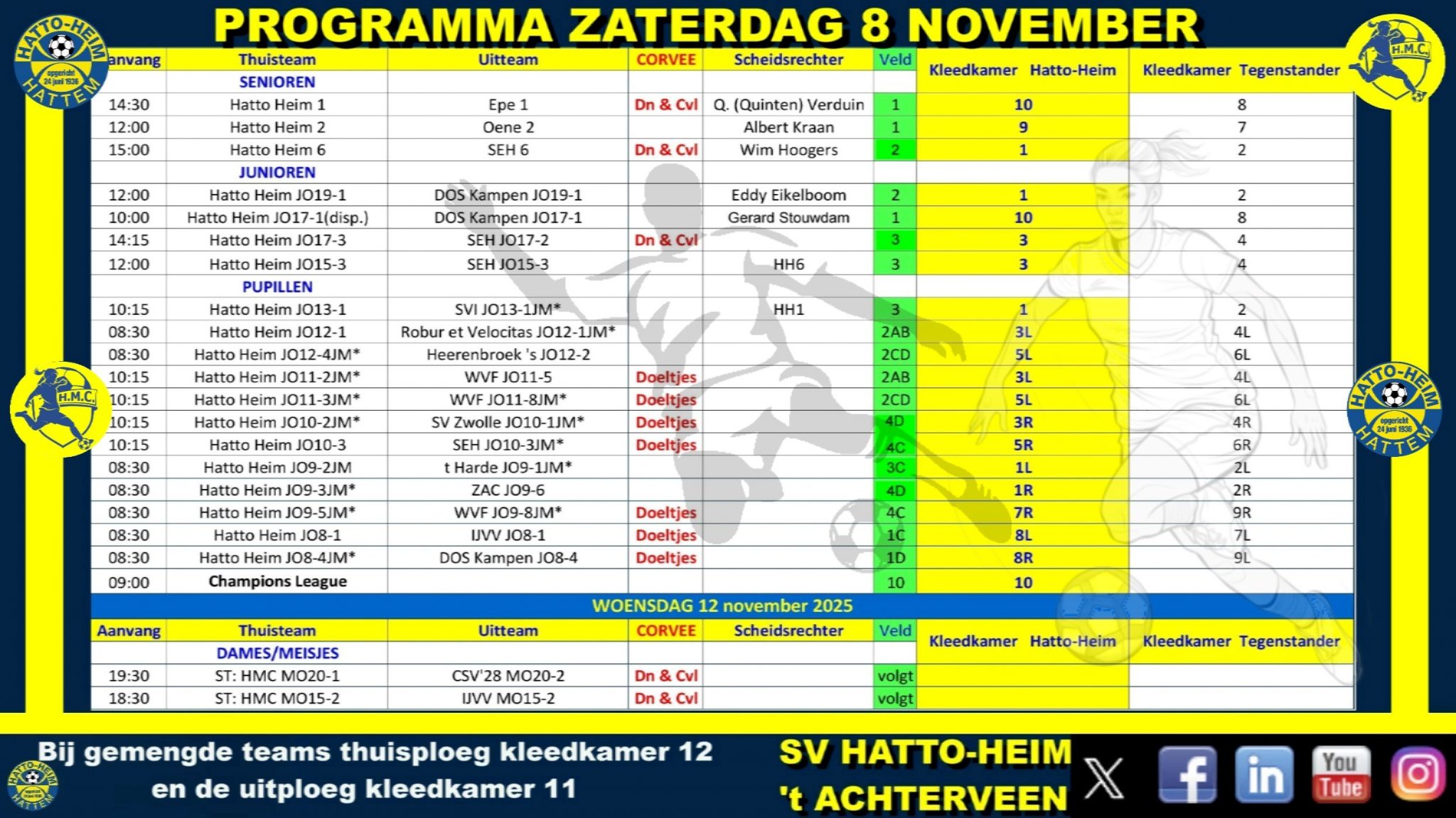 Let op! Veld 4 (trainingsveld) doeltjes en andere dingen ook opruimen i.v.m. de robotmaaier.