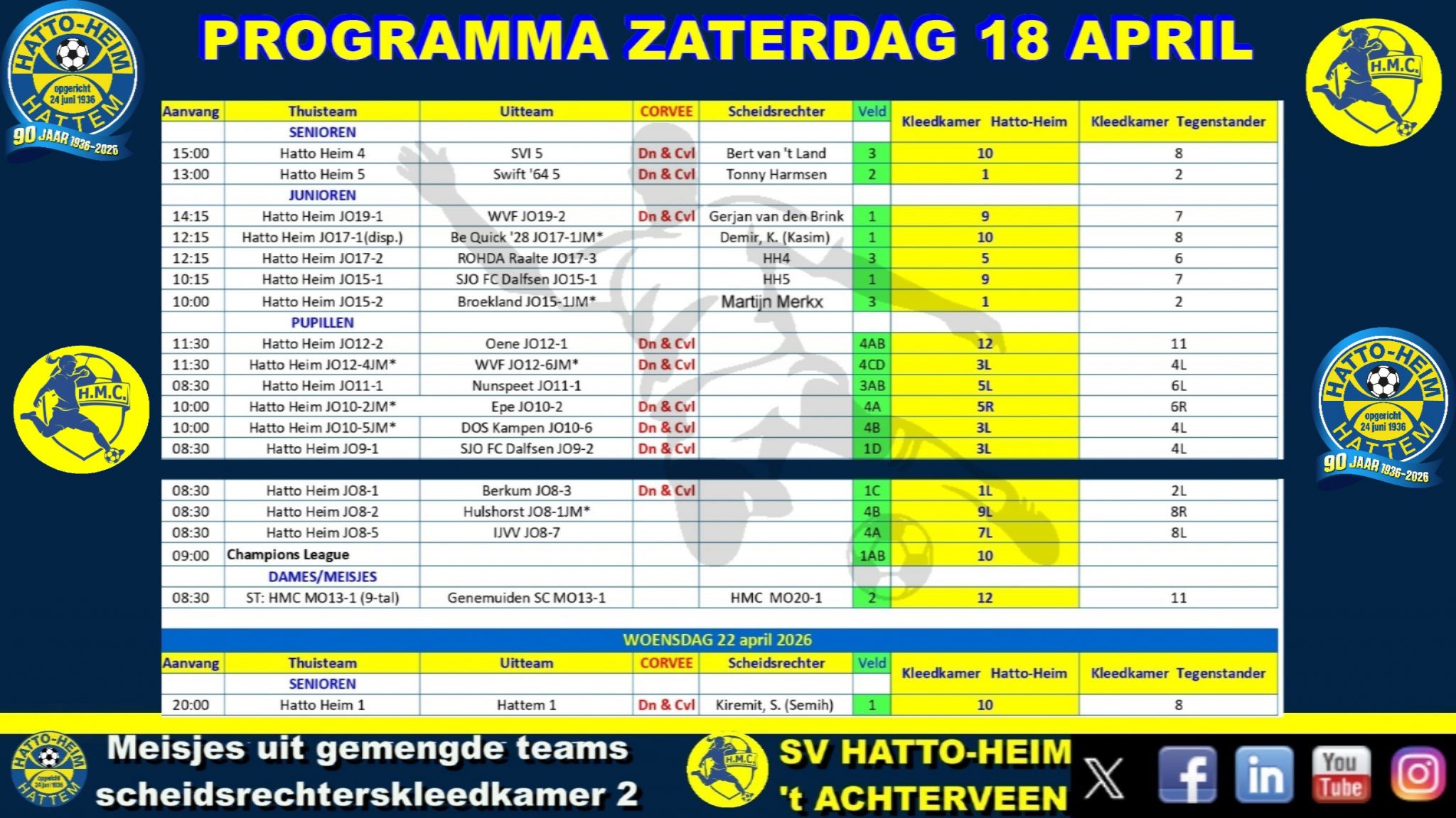 Hierbij het programma voor zaterdag 18 april.