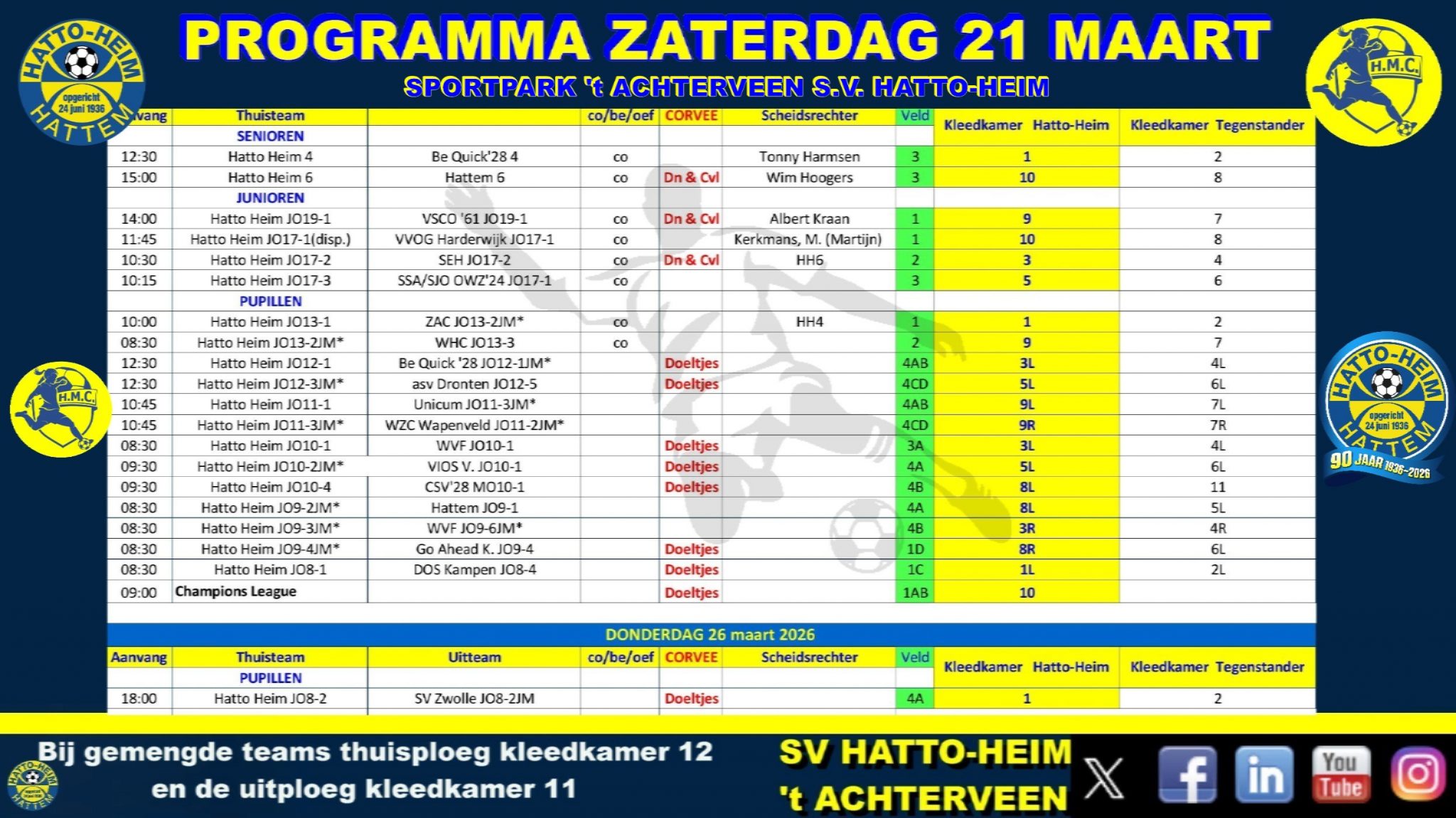 Hierbij het programma voor zaterdag 21 maart