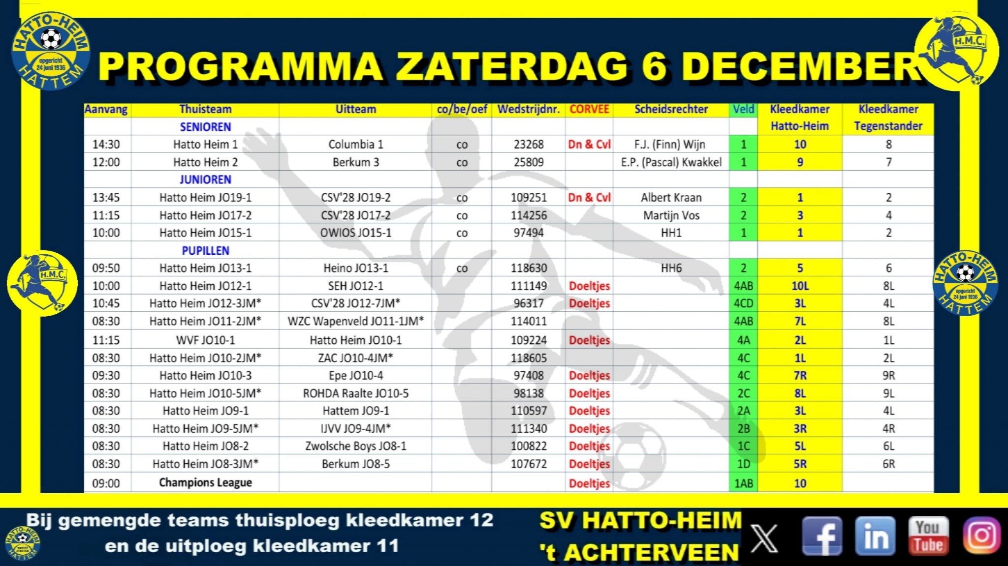 Hierbij het programma voor zaterdag 6 december.